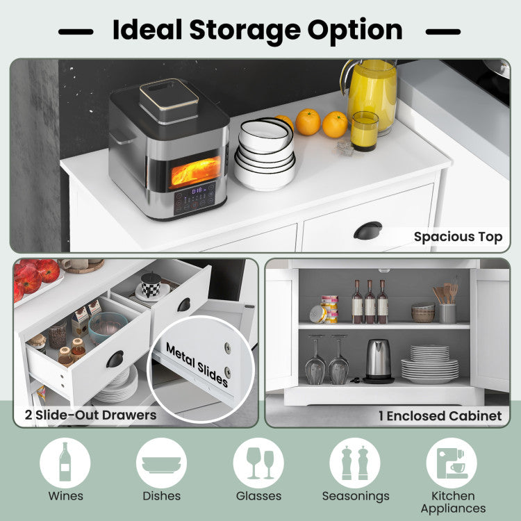 -1 wide top, 2 slide-out drawers and 1 double-door cabinet for ample storage space