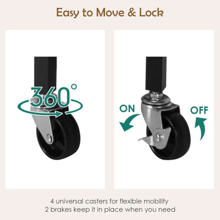 Flexibly designed with a removable top serving tray, this bar cart allows you to enjoy breakfast on your bed with raised edges to avoid chaos. Grab the handle and you can pull or push this cart smoothly. With 2 universal casters and 2braking casters, this bar cart slides around among your kitchen, pantry and other rooms. With high quality materials, this bar cart, slashing side table, storage buffet, and utility trolley, can serve you long and well in your home, office, and bar. Besides, the surface is water-resistant and anti-scratch to facilitate daily maintenance.