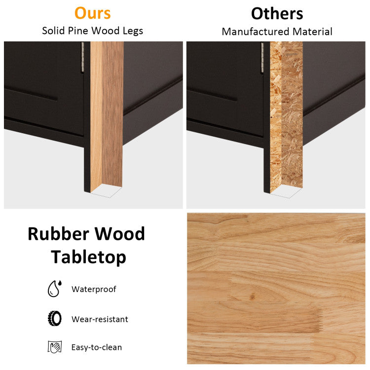 The rubberwood countertop and pine legs guarantee sturdiness and durability. It has one drawer one cabinet and three open shelves that provide enough storage space for you to organize your stuff. Towel rack on the side can be used as a handle for better control of kitchen trolley. Four smooth-rolling wheels make it move easily and freely and two wheels are lockable to keep stability. With an adjustable shelf behind the cabinet door to meet your different storage requirements. In addition, the simple but graceful appearance is very charming.