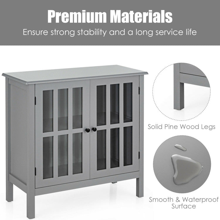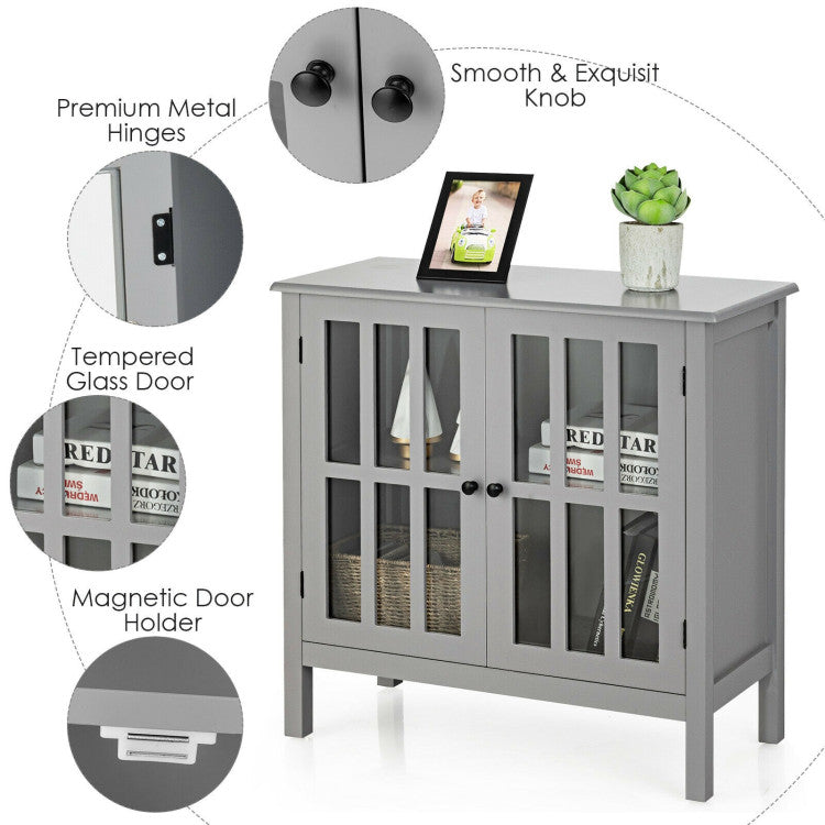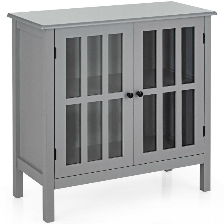 This unit features white finish, and modern& stylish style design. Constructed of high quality, non-toxic MDF material, this cabinet is sturdy and reliable. This functional storage cabinet has 2 tempered glass doors that open to two shelves for versatile storage .The classic white paint on the contemporary furniture will surely compliment any room decor.