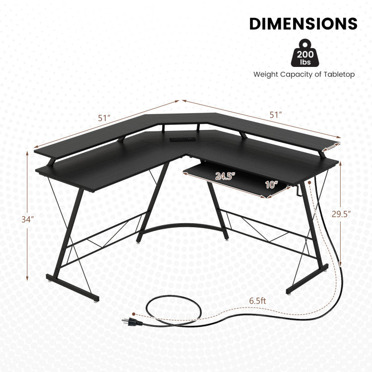 -L-shaped computer desk fits corners and provides ample space