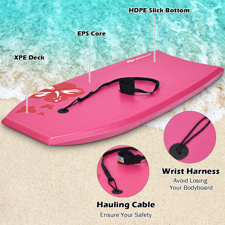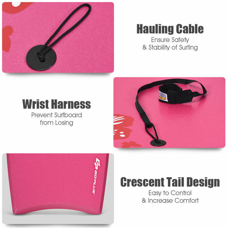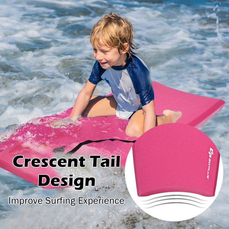 The crescent tail has great flexibility and comfort to suit your different riding styles. Made of high-quality EPS core, XPE deck and HDPE slick bottom, it has strong buoyancy and load-bearing capacity. Moreover, it has good impact resistance and weather resistance, making it difficult to deform and fade. The most important thing is that it has a leash and a wristband that protects you from being washed away by the waves. The light weight is easy to carry and transport, so you can take it to the pool, water park, river and sea.