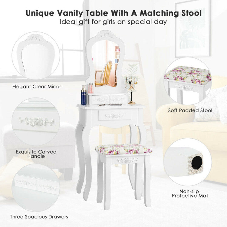 -The height of the stool perfectly matches the hight of the table and the mirror