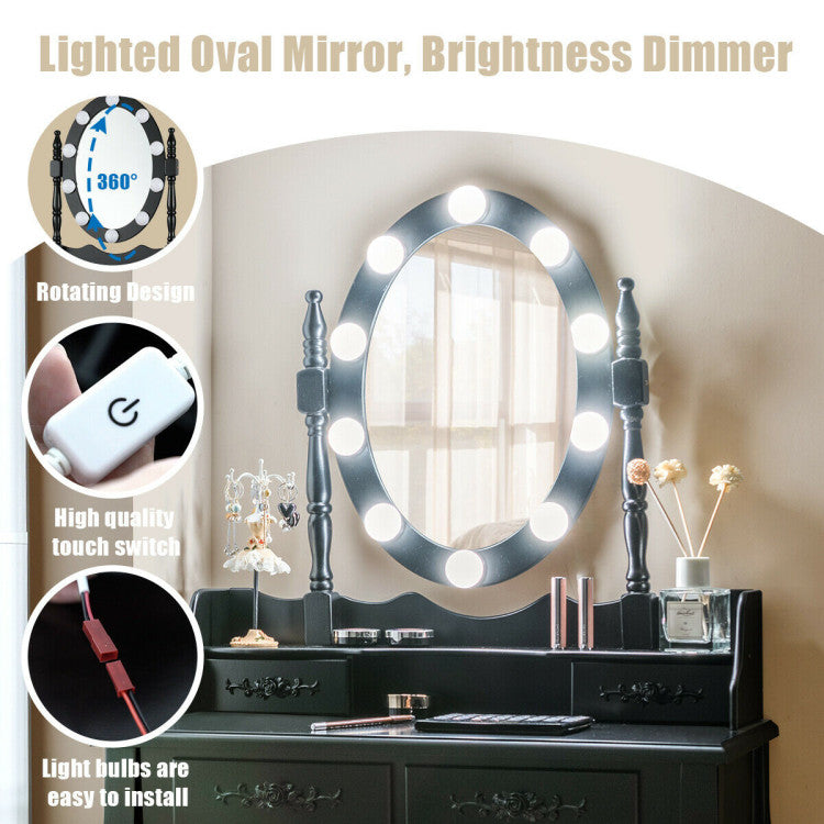 -360° rotating mirror with 10 LED bulbs gives you a bright view and the appropriate angle