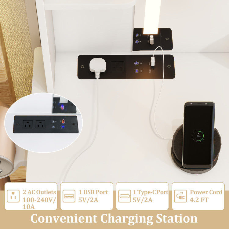 -Built in charging station with 2 AC outlets, an USB port and a Type-C port