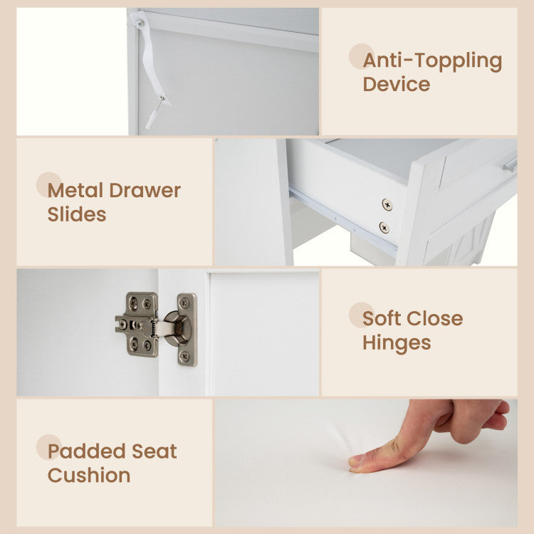 -Made with metal drawer slides and soft close hinges