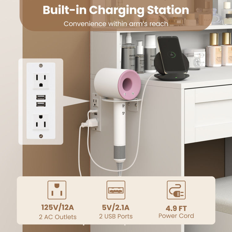 -Convenient device charging with built-in power sockets and USB ports