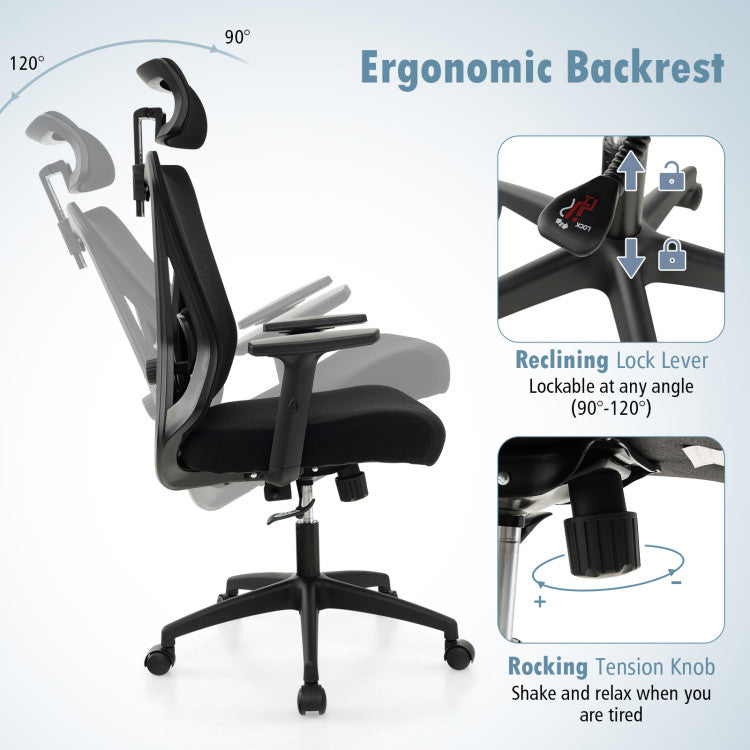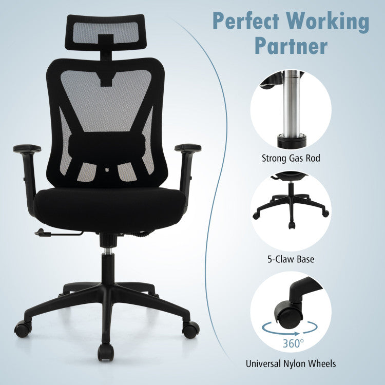 -Flexible office chair with a 4-directional adjustable padded lumbar support