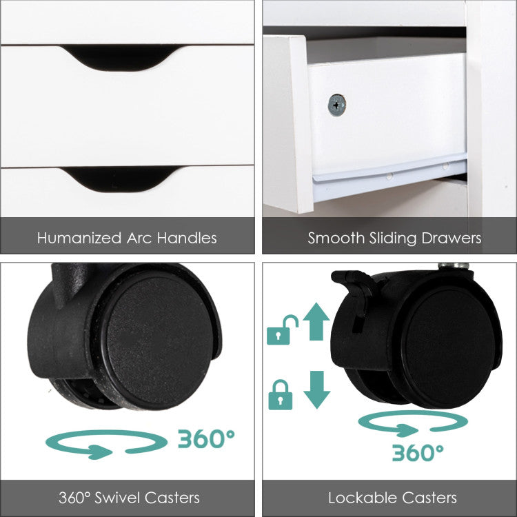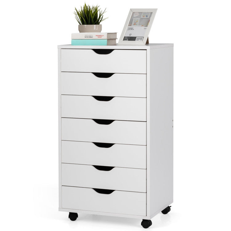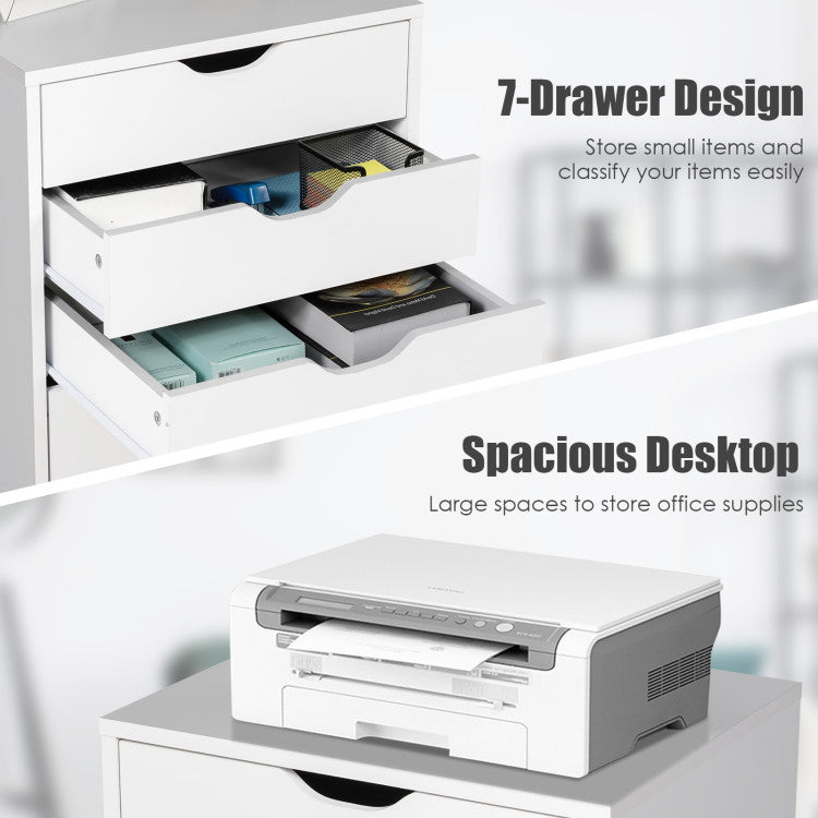 Made of durable engineered wood, this storage cabinet can be used for a long time. 7 large drawers provide ample storage space, which is very suitable for storing your documents, snacks, cosmetics, etc. Smooth sliding rails and user-friendly concave handles ensure easy access to items. This cabinet also features four 360° swivel wheels which can be removed for stationary placement or installed for mobility. In addition, according to the clear instructions included, our 7-drawer cabinet can be easily assembled.