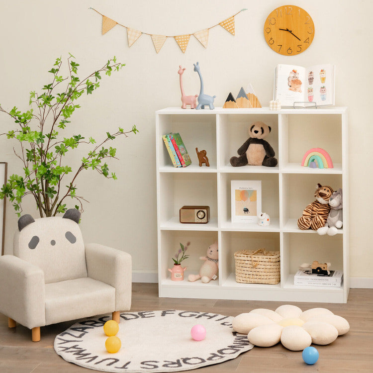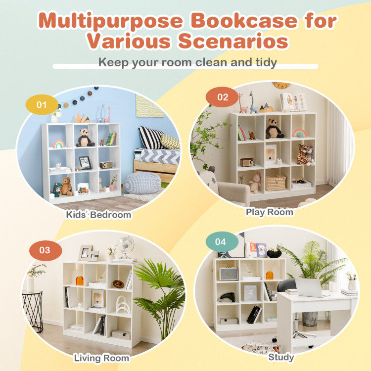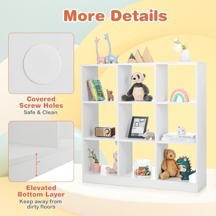 -Integrates 4 tiers of storage shelves and 9 cubes for toys and books