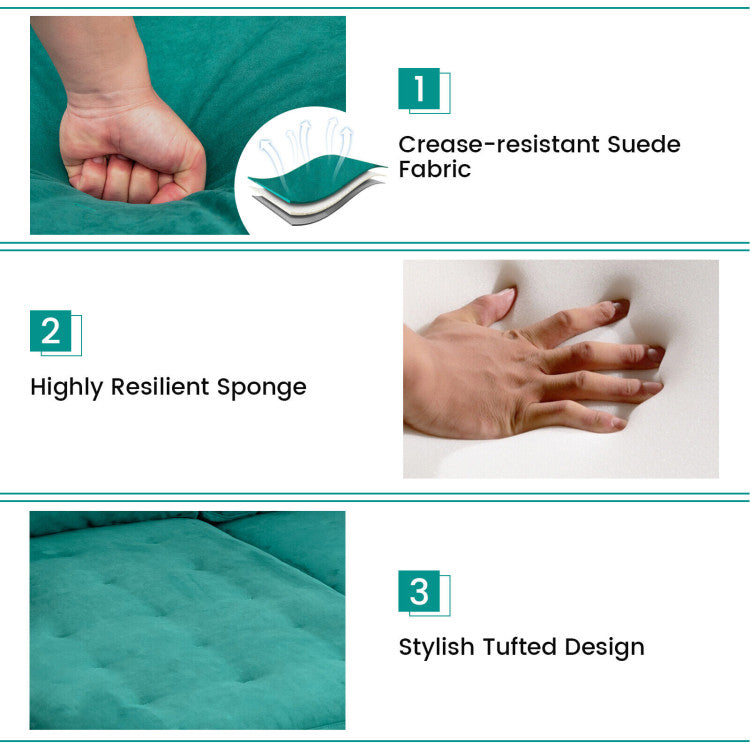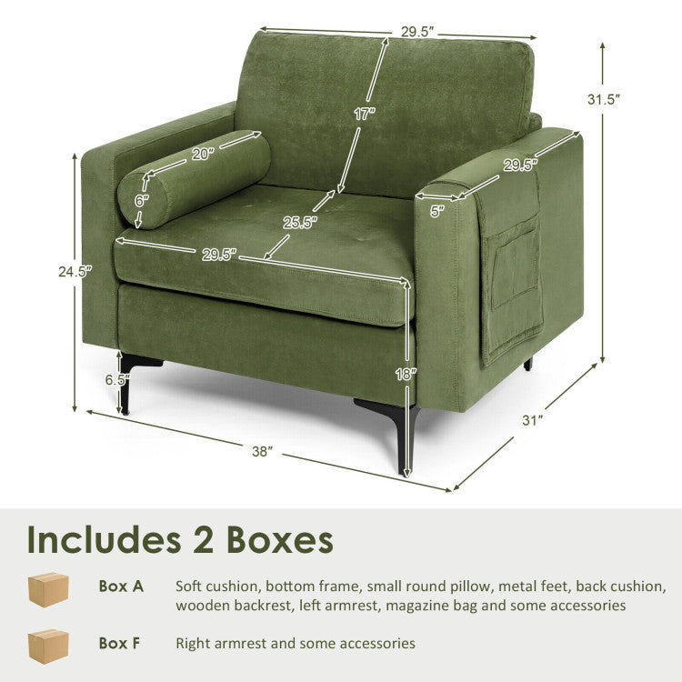 Covered with easy-care lint fabric (Gray)/suede fabric (Dark Green/Teal), this upholstered single chair is padded with high quality sponge to ensure utmost comfort. Distributed elasticity system keeps the spring strong and durable. Besides, it features soft back pillow, thick seat cushion and side bolster. What’s more, side pocket offers extra storage. The chair can hold up to 660 lbs, which can well support kids and adults. Solid frame, metal legs and anti-skid foot pads keep it durable and sturdy. With the leisure chair, you can comfortably and safely watch TV, read books, study or work.