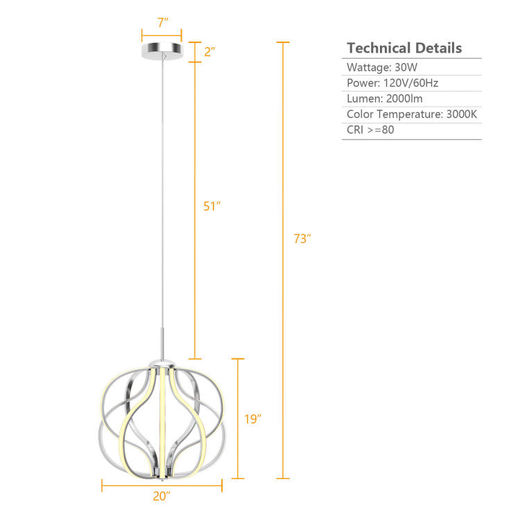 With adjustable brightness and height(25" - 73"), this energy-saving pendant light not only meets your different needs, but also allows you to install it in different places, such as dining room, entryway, bedroom and living room for various demands. At the same time, it works with different types of ceilings so that you can hang it on the flat, sloped or vaulted ceiling without worry. Thanks to its high light transmittance and contemporary design, this chandelier ceiling fixture brings warm and soft light to your space while adding a modern addition to your home decoration.