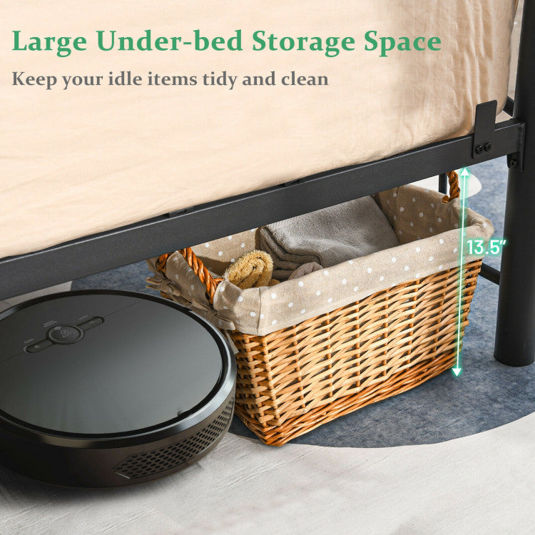 Thanks to the heavy-duty steel slats, the bed frame features outstanding toughness and bending resistance. Moreover, the reinforced support legs takes the stability of desk to higher level. The bottom of bed is high enough for you to store idle things and convenient to clean up. This bed frame offers you a comfortable sleeping experience with noise free design.