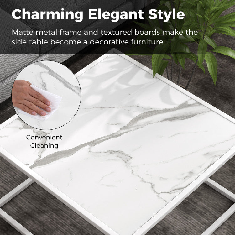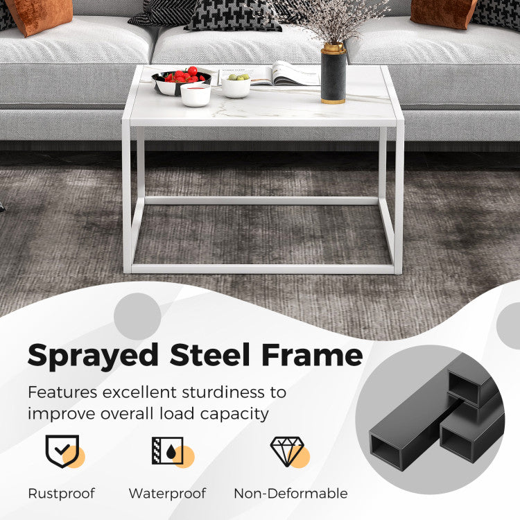 -Charming elegant design with matte steel frame and faux marble tabletop