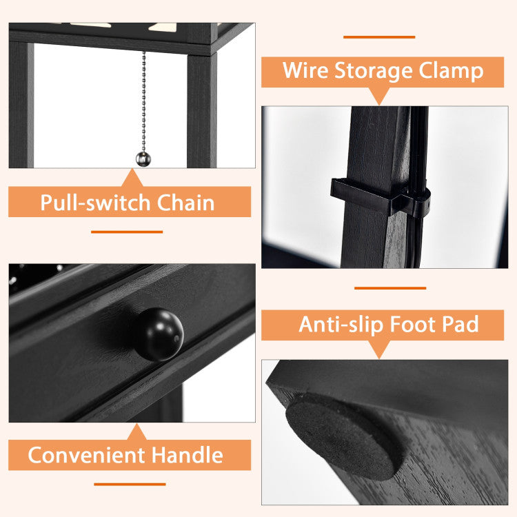If you electric devices run out of the battery, the power outlet and 2 USB ports will provide effective assistance. Apart from this, the pull-switch chain avoids you bending over to turn off the light for coziness. In addition, this floor lamp is also compatible with the role of bookshelf due to its 1 practical drawer and 3 open shelves.