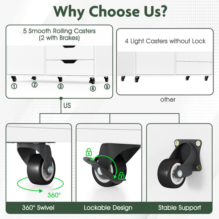-2 casters with lockable design keep the cabinet in place