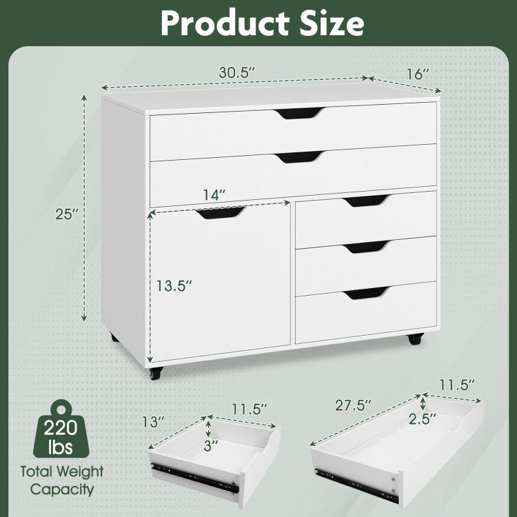 -5 drawers and single door cabinet offer classified storage space