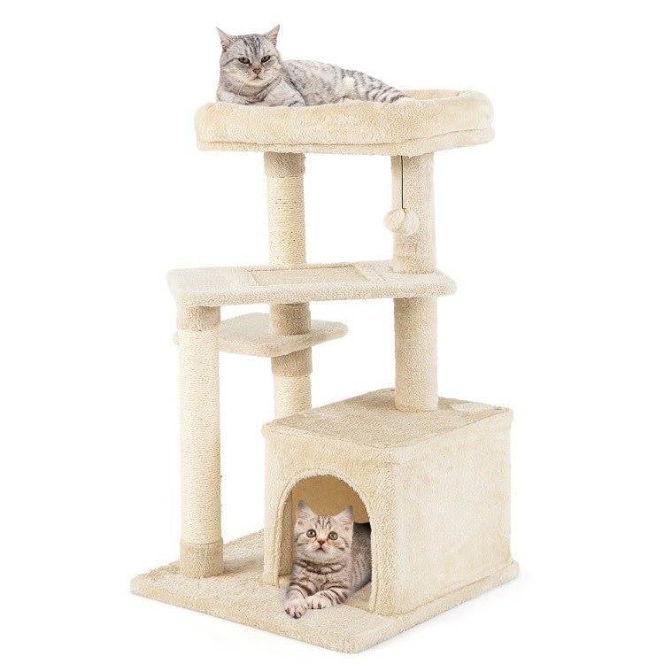 -Comes with a jingling fur ball and natural sisal-wrapped scratching posts