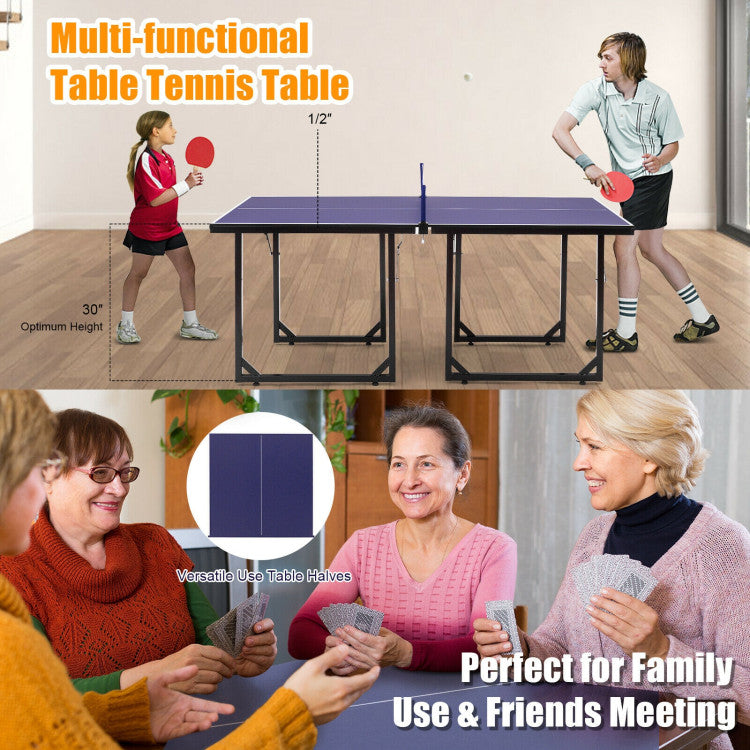 The midsize table tennis table is composed of two independent halves which is suitable for small venues to exercise and entertain.