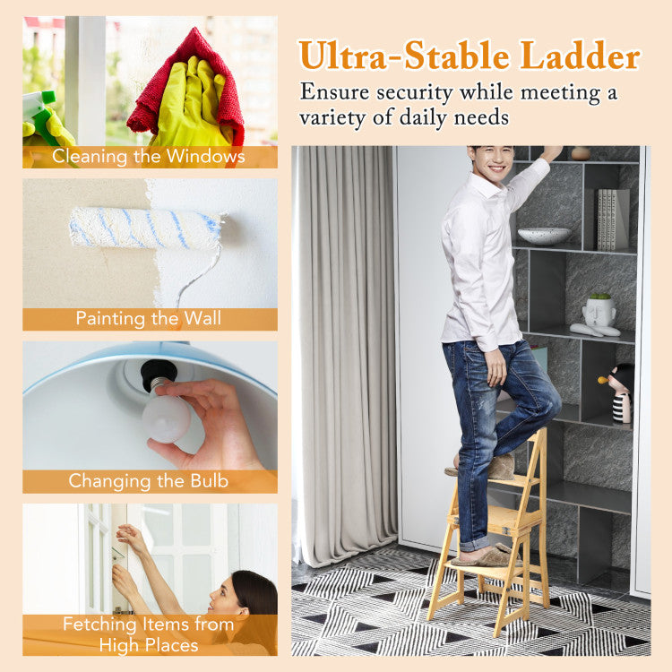 -3-in-1 versatile design as a 3-step ladder, high-back chair, and plant rack
