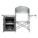 Equipped with sturdy aluminium tubes, heat-resistant aluminium and moisture-resistant MDF, it features heavy-duty, durability, stability so that can service you for long time. This outdoor kitchen stand also features a large top surface area, two side tables, a lower shelf and zippered bag which are ideal for storing supplies, condiments and food. It also includes a steel windscreen that can block the wind for heat retention and faster cooking. The lightweight and one-piece design make you hold easily and provide you a lot storage room. Easy set-up and folding down less than a minute allow you enjoy the camping trip as soon as possible.