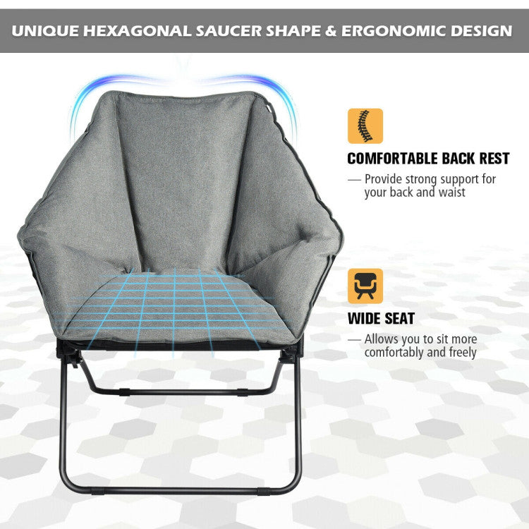 The saucer chair is made of rust-resistant iron frame, 600D Oxford cloth and cotton filler, which gives you strong support and can be used for a long time.