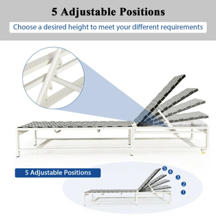 The sturdy construction makes it more stable without shaking. And you can rest, read or sleep on this patio chaise lounge due to five back tilting positions. Additionally, it is perfect for various occasions, including the patio, backyard, and more. More, the durable wheels make it convenient to move to any room.