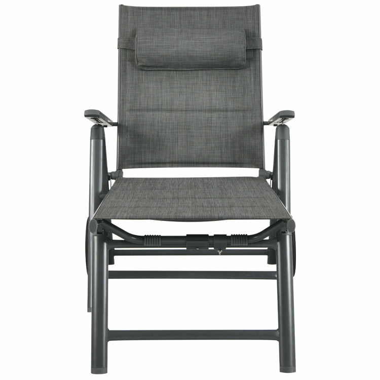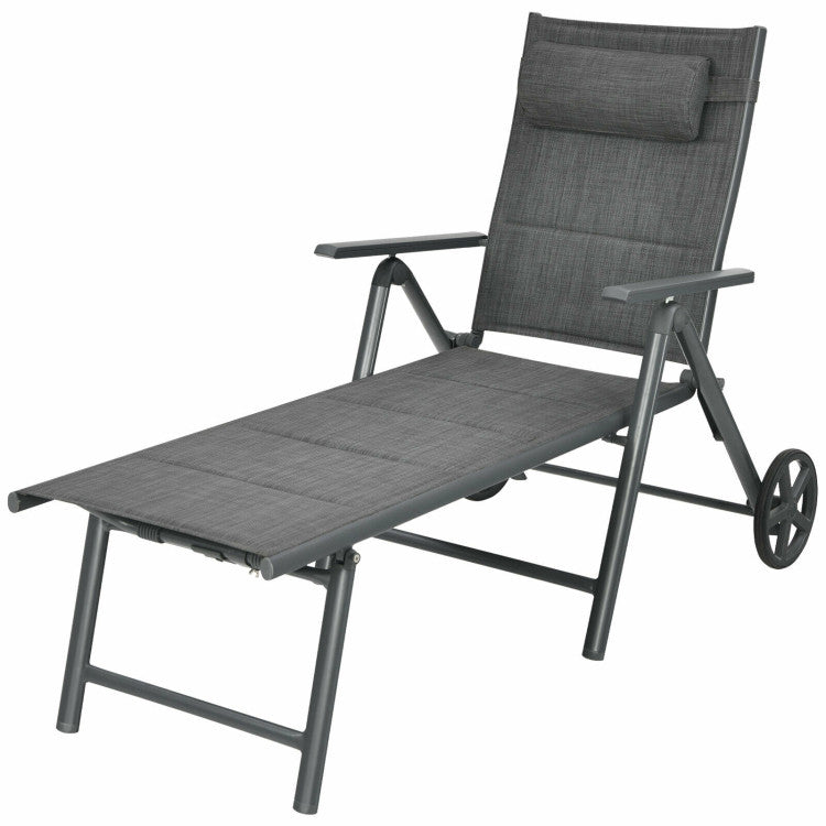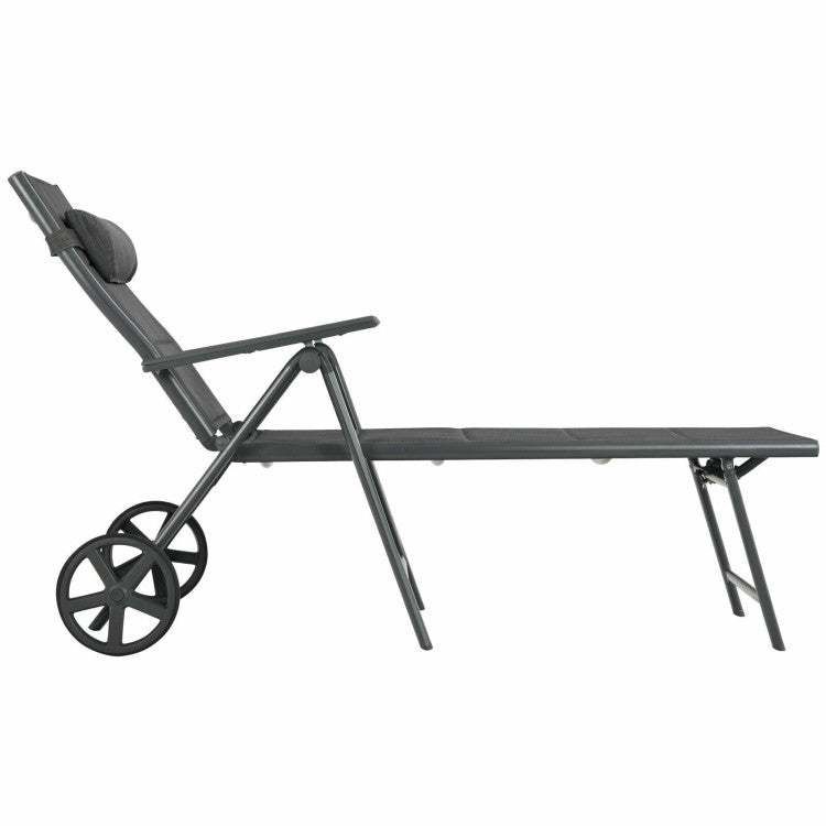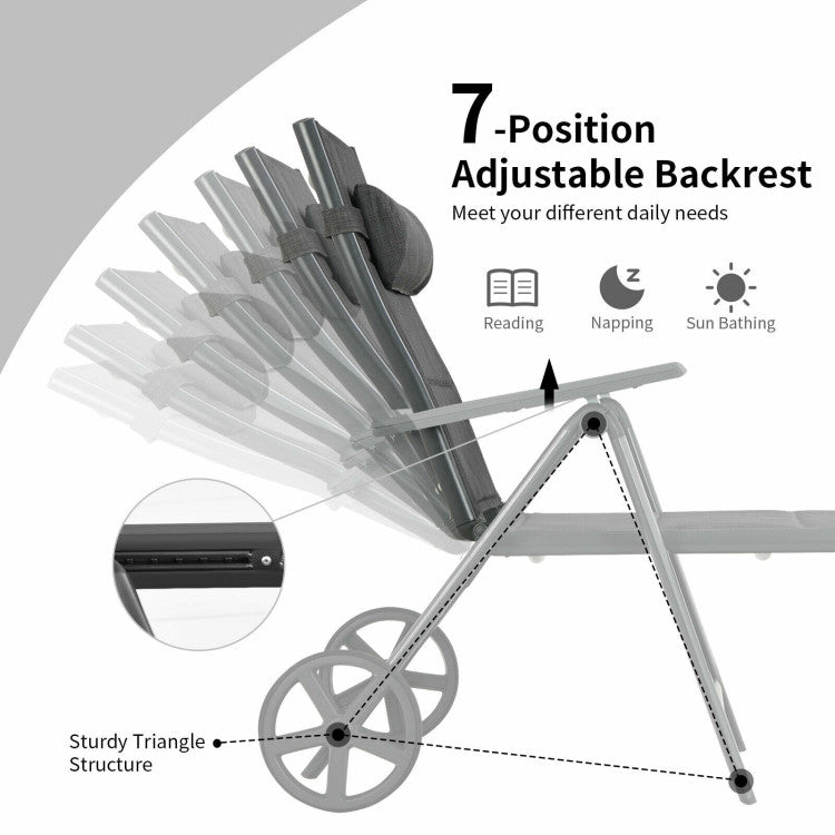With our lounge chair, you can do multiple outdoor activities, like fishing, sunbathing or taking a nap. The adjustable backrest helps you find out the most comfortable position. And the whole lounge chair is made of high quality. The fabric is not only all-weather resistant, but also breathable. And the heavy-duty aluminum frame is rust-free and anti-deformation. In addition, the two bottom wheels provide much convenience to you, as you can move the chaise lounge chair without lifting. When you don’t use it, you can just fold it up and store it in the corner. Our patio chaise lounge chair will be a fabulous choice for your outdoor leisure time.