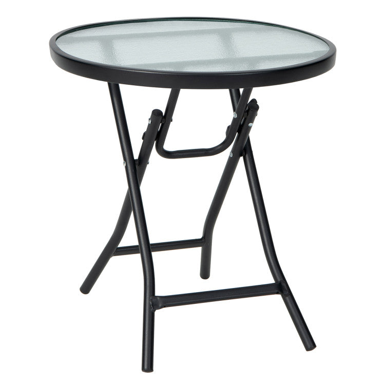 This patio table is made of a rustproof steel frame and tempered glass tabletop, which features high density and can be used outdoors for a long time. 4 legs are equipped with non-slip foot pads to prevent the floor from getting scratched. And the X-shaped structure offers strong support. With a folding design and compact size, the round dining table will not occupy too much space when not in use. Besides, it is convenient to store and transport. This versatile side table can be used as a coffee table or patio table to meet your different needs.