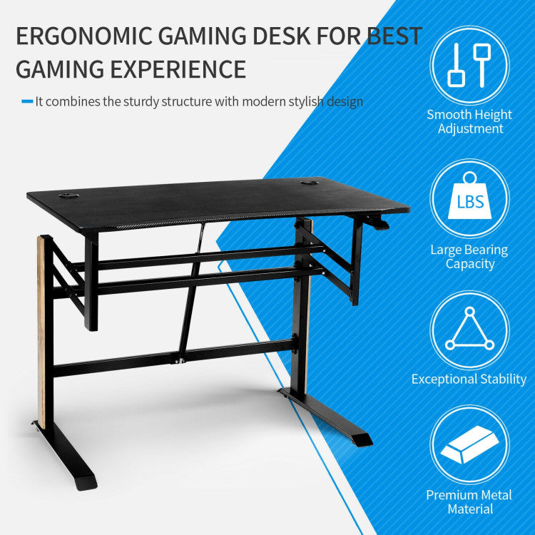Too tired to sit there all the time during an important gaming moment? If so, you can't miss this pneumatic height adjustable gaming desk.
