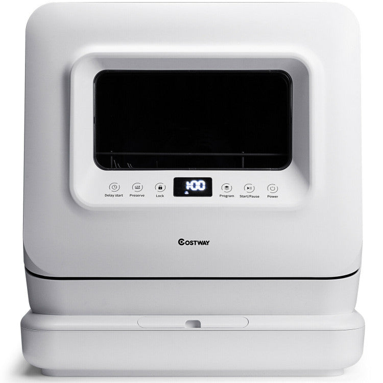This dishwashing machine has top and lowers spinning spray arms to pump the water through 22 ports for all-degree cleaning. An openable water tank is designed for a sink-free operation. Despite its compact countertop size for condos, dorms, or RV, it has a roomy basket and a cutlery rack for 2 sets of 28 pieces of dish loads and a designated slot for a washing tablet. And the dishwasher does more than just rinse off grease, it also dries and sterilizes the dishes with a 124 degrees Fahrenheit hot air function. Combining with automatic ventilation function, you can store your tableware in dry condition, providing clean dishes whenever you need them.