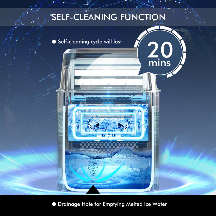 -Daily yield 40 LBS, one cycle of 15 minutes, 24 pcs per cycle, ice storage of 2.4LBS