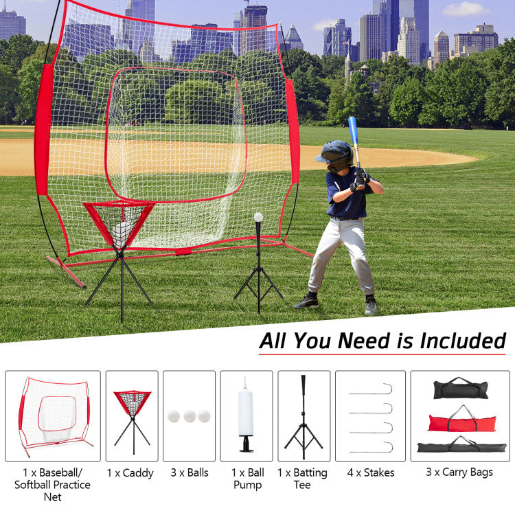 -Package includes: 1 x Baseball net, 3 x PVC balls, 1 x Ball caddy, 1 x Batting tee, 3 x Storage bags, 1 x Instruction