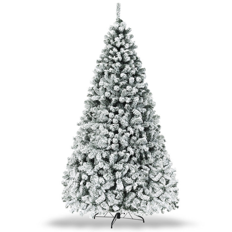 Snow Flocked and Dense Appearance: With enough branch tips, the artificial hinged tree is leafy and fluffy, creating a full and realistic appearance. Snow-flocked leaves on the tree make you feel like you are in the world of snow. You can embrace the joy of Christmas to your heart's content, adding more shiny factors to your living space. LED Lights for Eye-catching Decoration: The pre-lit snow-flocked Christmas tree is designed with warm LED lights, which will be a glamorous decoration to give a long-lasting brightness. It is widely used in the home, apartments, shops, hotels, etc. to emit a unique Christmas light glow. Hinged Design for Easy Assembly: All hinged construction makes the artificial tree quick to assemble, which can expand easily without much time and effort. And you can tidy up the branches to make the whole tree fuller. Besides, the tree is simple to store after being split into several sections. Premium PVC Needles: Made of environment-friendly PVC material, this snow-flocked Christmas tree is odorless and harmless to the human body for safe use. With exquisite craftsmanship, it is non-flammable and not easy to fade and deform, providing you with long-term service. Solid and Stable Metal Stand: A sturdy metal stand is designed for keeping the tree standing upright and prevent it from falling. Compared with other plastic bases, the X-shaped iron base with non-slip foot pads is more stable and resistant to breakage, offering stronger support throughout the year. And it is foldable to facilitate storage.