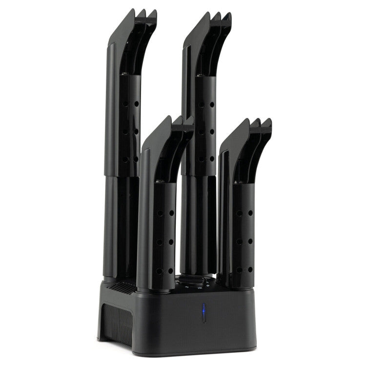 With high-performance heat blower, the shoe dryer will dry your shoes in hours. The time-selection knob allows you to choose the suitable operating time according to different kinds of shoes. Moreover, the patented drying tube is integrated and anti-blocking. And the shoe dryer is designed with overheat and over-current protection for high safety. Plus, the dryer operates with low noise, which won't disturb your sleep or relaxation. The 4-tube design makes the dryer ideal for 4 shoes to dry at the same time. And you can also use the dryer to dry other items like socks, hats, gloves and so on. The detachable design makes the shoe dryer easy to put together or disassemble, bringing much convenience to you.