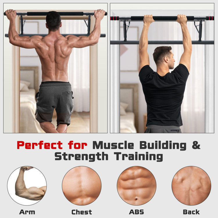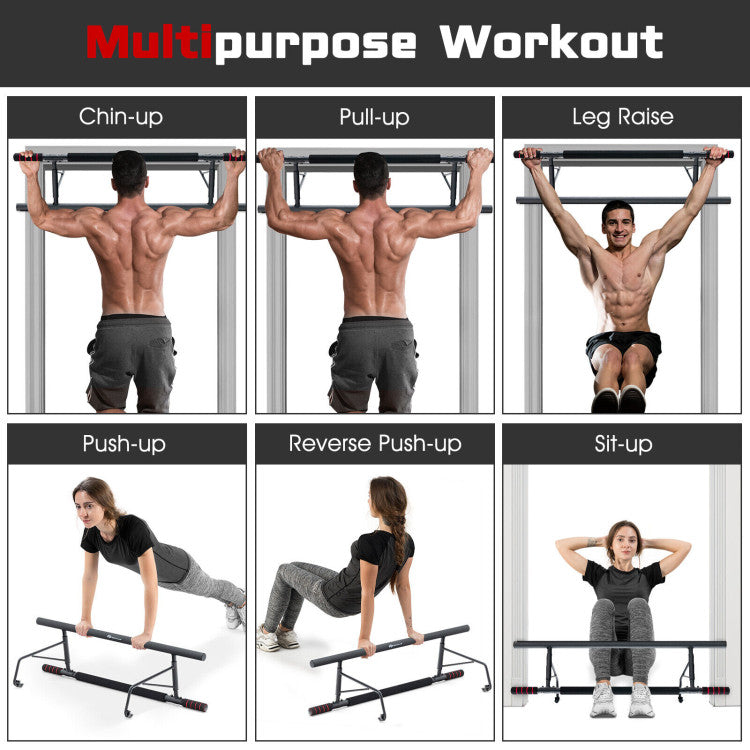 Then this multifunctional doorway chin-up bar is a good addition to your list! The workout equipment is convenient to set up. You just need to open the arms and hook it up on the door frames, instead of using extra tools or drilling holes. And the pull-up bar is compatible with most door frames, allowing convenient use in home gym. What’s more, the horizontal bar is made of high-quality thickened steel, which ensures a large load capacity and a long service life. With non-slip foam-wrapped handles, it is comfortable to grip and do the exercise. In addition, you can also choose to use this workout equipment on the floor for other workout forms.