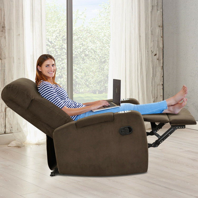 You can sit down or lie down on the chair to relax. A high-density sponge makes your sitting experience comfortable. Wide armrest, curved backrest and comfortable footrest are beneficial to users' health. Besides, the stable bottom can perfectly protect your safety during the using process. Extra storage space allows you to put different items. Double cup holders make it possible for you to sit down with a cup of coffee putting on the chair.