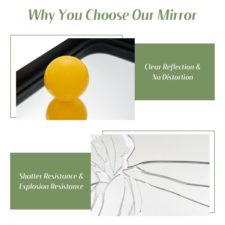 You can hang it vertically or horizontally in your bedroom, living room, dining room, etc. And it can be used as a vanity mirror for you to make up or a decorative tool to beauty your room. Besides, it’s 3-layer construction (premium glass, rust-resistant steel frame and solid MDF backboard) ensures high durability and long-lasting service life. After hanging, it is stable and not easy to tilt. In addition, 3 assembly holes, screws, anchors and clear user manual help you to assemble it without effort.