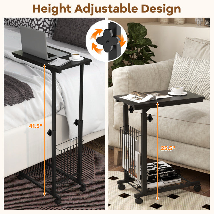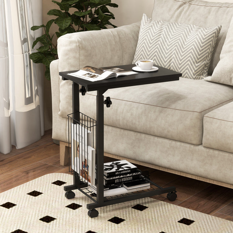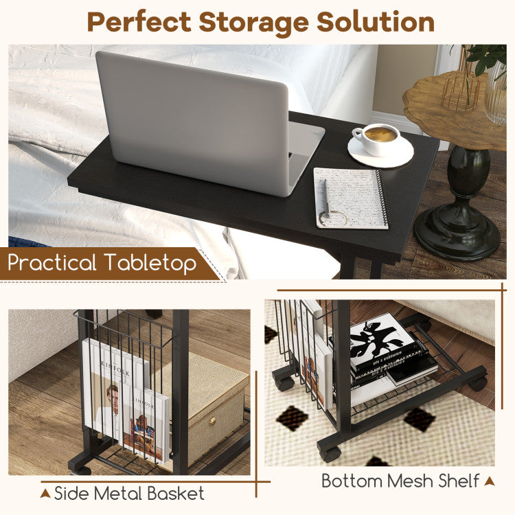 This is the C-shaped snack table. Can be used as end tables, lamp tables, sofa side table, bed side table, laptop desk, coffee table, decorative displays tables, or simply accent pieces. This functional side table has a black finish top, which is ideal for your snacks, dishes, remotes, books or laptop. Steel frame is solid and durable. With the feature of small, this end table is ideal for sofa, ottoman or couch side, and the lower steel mesh can provide extra storage space for books, magazines, etc. It will make you life easy and convenient. Do not hesitate to buy one and enjoy your leisure time.