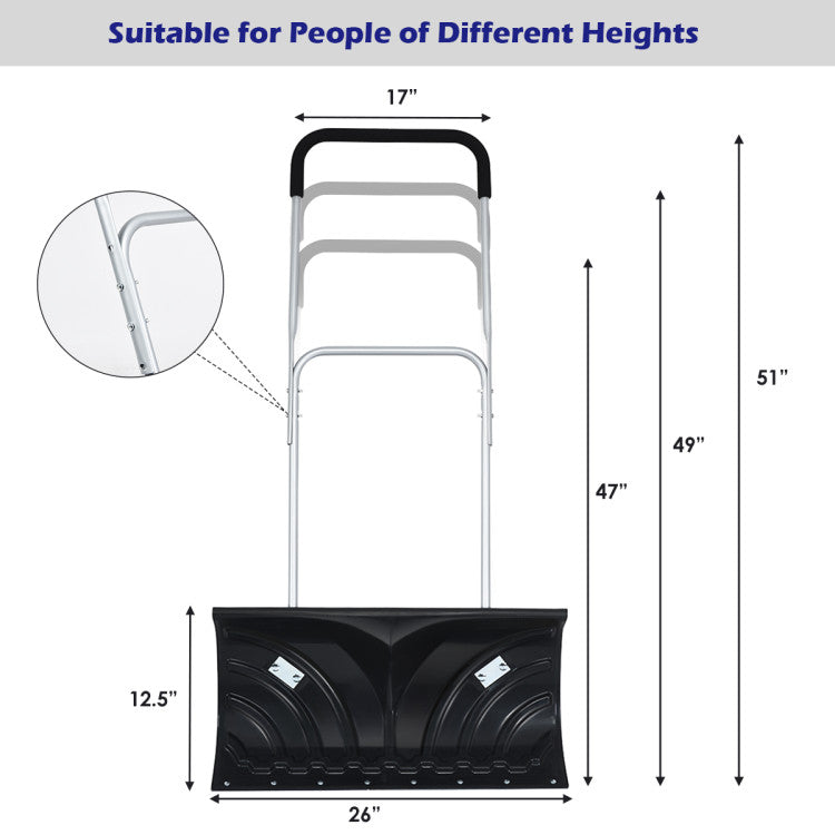 The special design allows you to push away snow to where is convenient for you and no need to duck down again and again bearing the overwhelming backache. The non-slip wheels make you clear up snow in this effective and effortlessly method safe and sound, even on a slippery and wet surface. Easily installed feature and tender EVA cover on handle improve your using experience more, offering you a simple and pleasant way of snow removing.