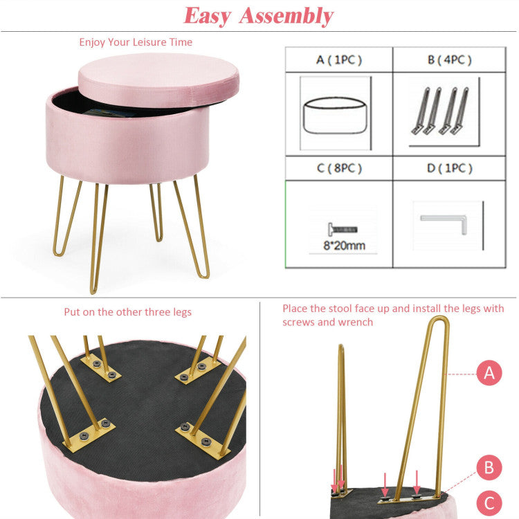Uniquely designed with hairpin-like and wired metal legs, this stool would not only add nobleness to your modern room but also support stably without any wobbliness. As an ottoman, it can be used to rest your foot during your leisure time lying on your sofa. While with interior storage space, it can also be used to store your clothes or toys in your bedroom.