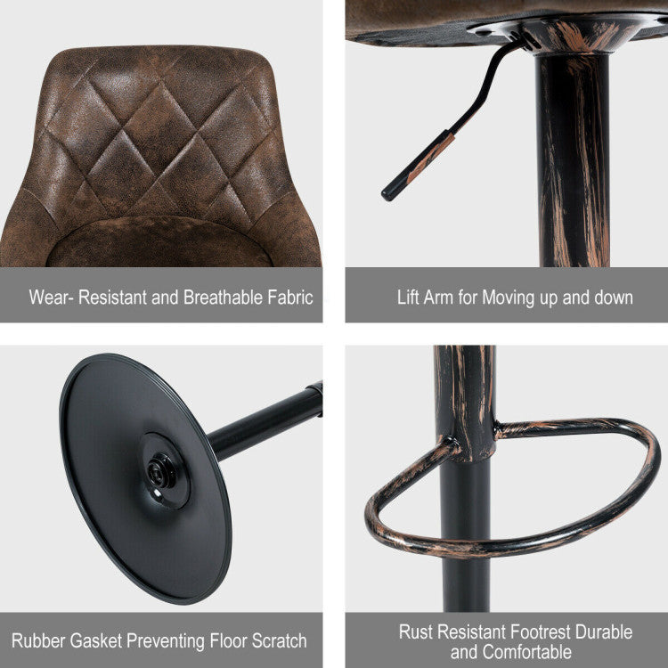 Two pieces are sold together so that you can enjoy chatting time with your friend or family. Made of unique hot-stamping cloth, the barstool has good wear resistance and air permeability, and is soft and comfortable. In addition, you can easily adjust the seat height by pressing the lift arm. And the seat can swivel 360?. Stable structure with large base holds up to 250 lbs. Most importantly, ergonomic backrest and footrest provide you with comfortable using experience. Now get set of 2 chairs to decor and use anywhere you need them!