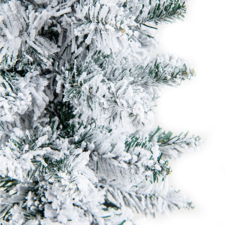 -The snowy flocked design adds a touch of winter wonderland charm to your tree