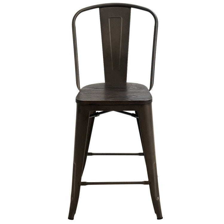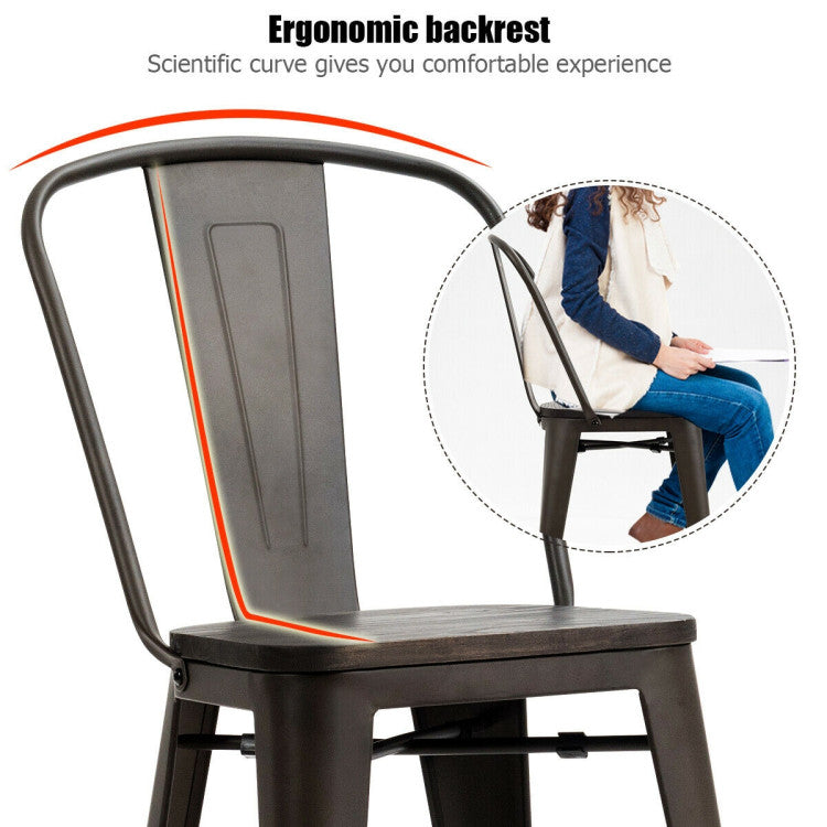 Featuring a solid steel construction and elmwood seat, these leisure chairs are durable and stable, ensuring their long-term service life. They will keep their form and quality for years to come. The dining chair features an elm wood seat for a relaxing and comfortable sitting experience. The ergonomic design makes it perfectly adapt to the shape of the body, helping reduce back pressure and improve blood circulation. These metal counter stools are compact and lightweight, so they can be moved from one place to another effortlessly. You can also store them by stacking one over the other. They offer a bistro-style aesthetic to other pieces and will blend in well with other decoration styles you have in your home. This counter chair set is ideal for homes, cafes, restaurants, bistros, and other places.