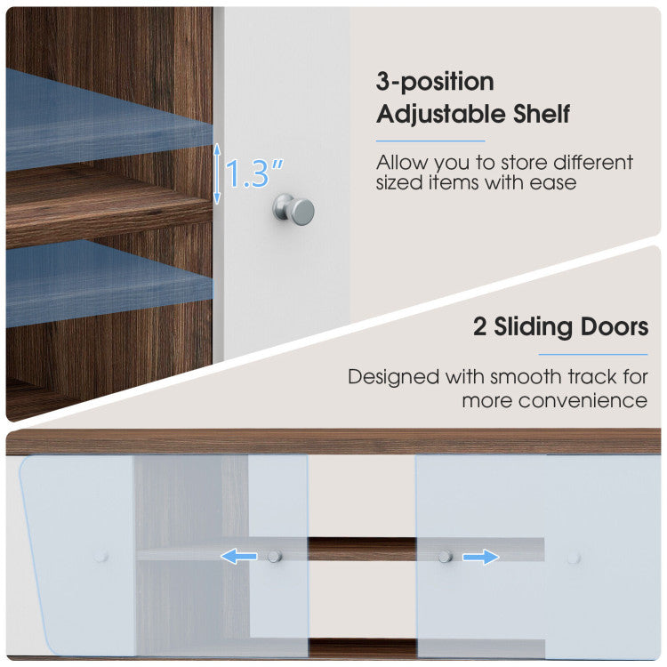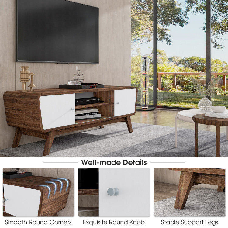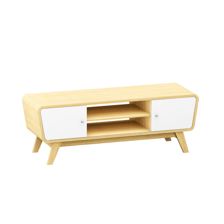 Spacious desktop is compatible with the size of most television panels up to 55". 2 sliding doors and an adjustable open shelf provide you with multiple storage options for assorting a wide arrange of media items, which creates a clean and tidy impression for your home. In addition, you can also use it as a console table to facilitate storage. Modern style and elegant appearance add refined sensation to your home, which works great as a TV table and display stand.