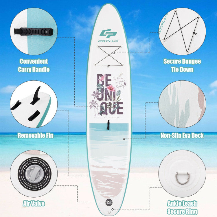 The inflatable stand-up paddleboard is ideal for water activities, such as padding, water yoga, fishing, and water sunbathing.