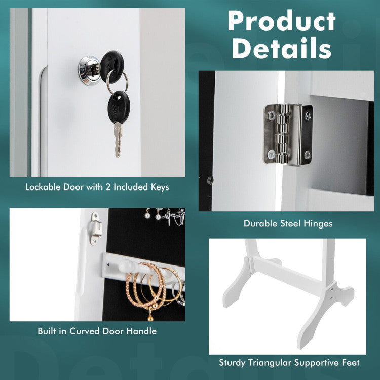 This freestanding jewelry cabinet combines full length LED mirror, jewelry armoire and makeup storage organizer, meeting your different needs in one.