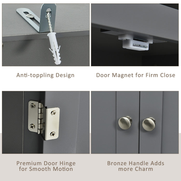 -Large storage space with 3 layers, bottom cabinets with doors, and keeps your messy room in order.