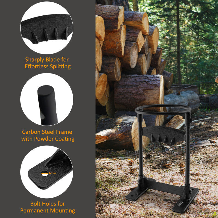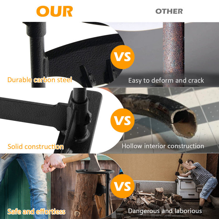 Placing the wood in the top ring, and then striking it with a hammer or other tools, you can easily split logs into pieces of firewood you need with less energy by this firewood splitter.
