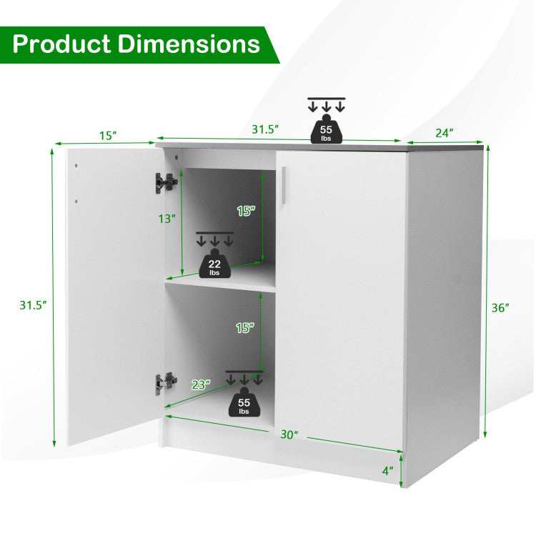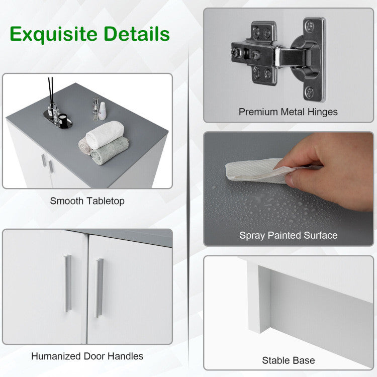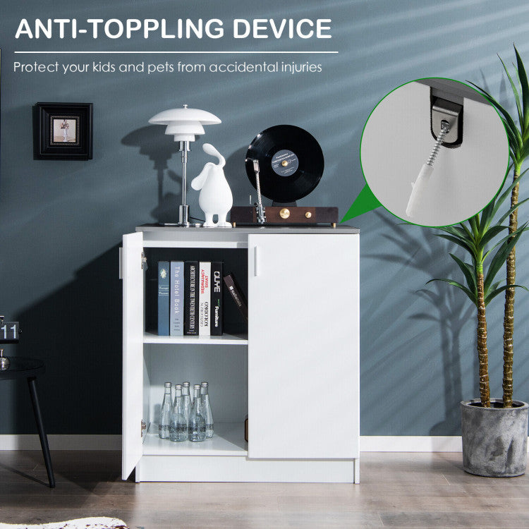 With a simple and stylish appearance, this multifunctional floor storage cabinet helps to make a relaxed atmosphere in your laundry, kitchen, living room and any other space, while keeping your home neat and accessible. Designed with 2 anti-toppling devices, this kitchen sideboard is stable enough to hold your daily items without wobbling. This wooden side cabinet will be a great storage solution for your home or other places you want.